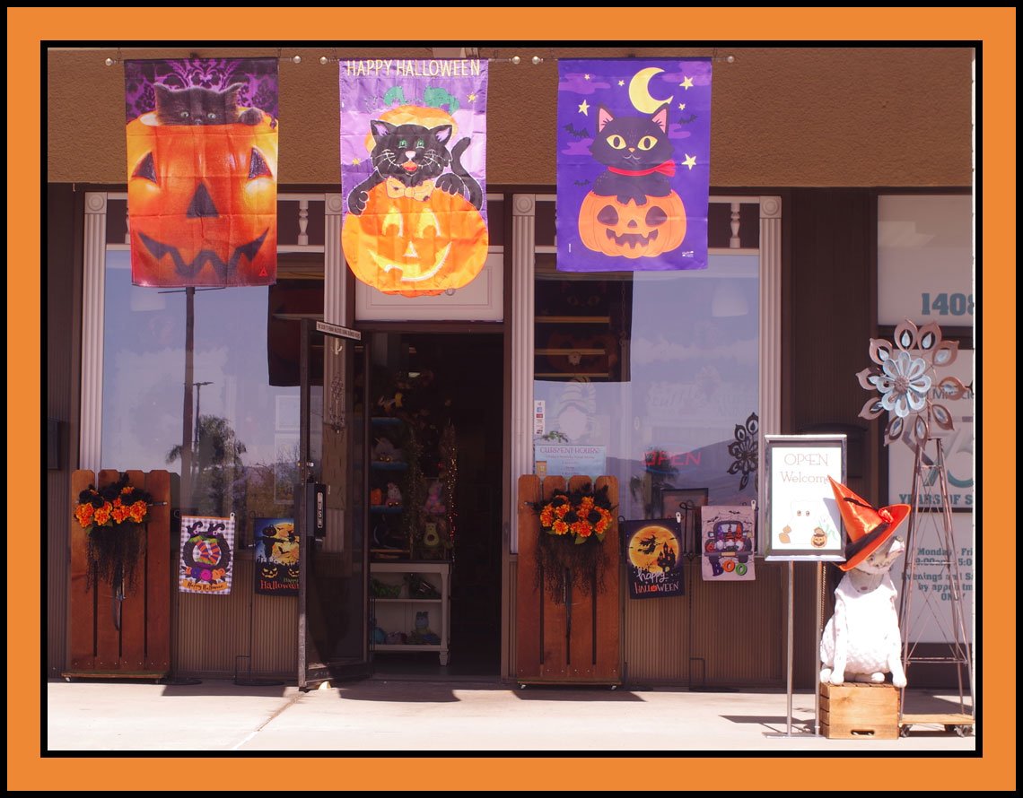 Halloween House and Garden Flags have just replaced the Summer ones on our Flag Wall near the front of the Shop!