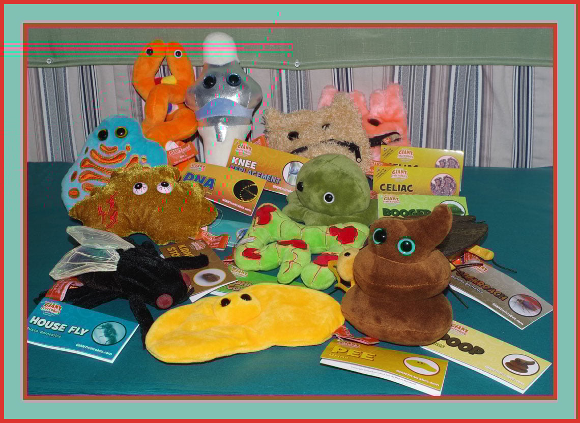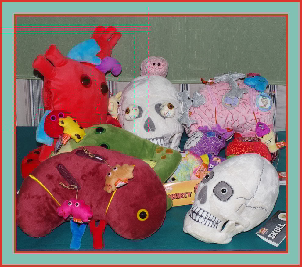 Our very favorite thing abut supplying our Medical Area is what a great marriage the plush Body Parts from I Heart Guts make with complimentary plush Cells from Giant Microbes!